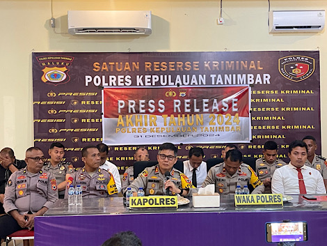 Tribratanews.polrestanimbar.com – Polda Maluku, Kepolisian Resor Kepuluan Tanimbar, Menjelang akhir Tahun 2024, Polres Kepulauan Tanimbar menggelar Pers Release akhir Tahun yang berlangsung di Ruang Gelar Anindya Yodha Satuan Reskrim Polres Kepulauan Tanimbar, Selasa (31/12/24) pagi.