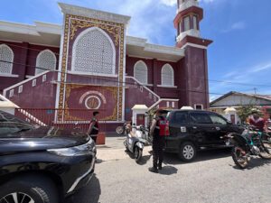 Tribratanews.polrestanimbar.com – Polda Maluku, Kepolisian Resor Kepulauan Tanimbar, Guna memastikan pelaksanaan ibadah Sholat Jumat berjalan aman, tertib dan lancar, Satuan Samapta (Sat Samapta) Polres Kepulauan Tanimbar secara rutin melaksanakan kegiatan pengamanan dan patroli dialogis di sejumlah masjid yang ada di wilayah hukum Polres Kepulauan Tanimbar.