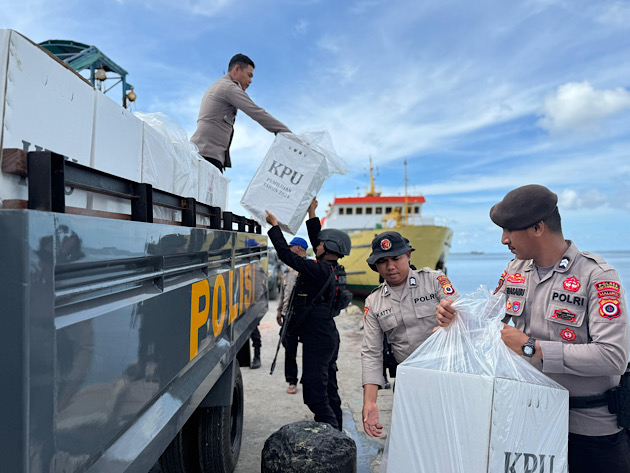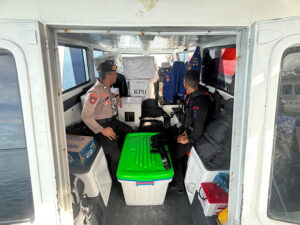 Materil Logistik hasil Pemilihan Umum Kepala Daerah (Pilkada) serentak 2024 berupa, Kotak suara sebanyak 40 (empat puluh) buah yang terisi dokumen penting hasil Pemilu maupun Kotak suara kosong sebanyak 2 (dua) buah akhirnya tiba di Pelabuhan Yos Sudarso untuk selanjutnya didistribusikan ke KPU menggunakan kendaraan Dinas milik Polri.