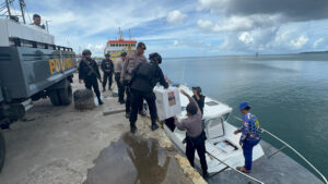 Tribratanews.polrestanimbar.com – Polda Maluku, Kepolisian Resor Kepulauan Tanimbar, Dalam upaya menjaga keamanan dan kelancaran pendistribusian logistik hasil Pilkada, Personel gabungan Satgas Operasi Mantap Praja (OMP) Salawaku 2024 Polres Kepulauan Tanimbar lakukan pengawalan dan pengamanan ketat, Sabtu (30/11/24).