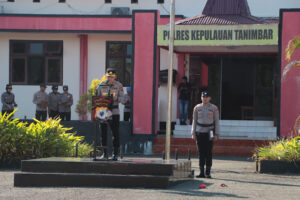 Upacara yang berlangsung di halaman apel pada Mapolres Kepulauan Tanimbar tersebut tampak dihadiri oleh Wakapolres Kepulauan Tanimbar Kompol WILHEMUS B. MINANLARAT, S.H., para Pejabat Utama (PJU) Polres, para Kasat, Kasi, para Perwira Staf beserta seluruh Personel Polres Kepulauan Tanimbar.