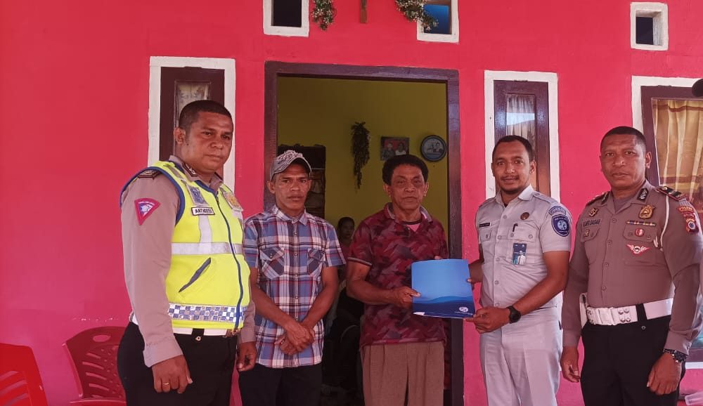 Hal itu dibenarkan kaur bin opsnal (KBO) Satuan Lalu Lintas Polres Tanimbar Ipda A. Melsasail yang didampingi beberapa personilnya bersama petugas Jasa Raharja yang mendatangi langsung ayah korban (BM) didesa Alusi Kelaan untuk menyerahkan santunan Jasa Raharja.