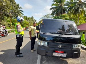 “Dalam kegiatan ini kami lakukan Penegakan hukum berupa Tilang kepada 5 Pelanggar UU nomor 22 tahun 2009 tentang LLAJ yaitu Pelanggaran terhadap pasal 281 sebanyak 4 orang dan pasal 288 ayat (1) sebanyak 1 orang. Selain itu teguran juga turut kami berikan secara humanis kepada 5 Pelanggar dalam kegiatan ini”. Ujarnya.