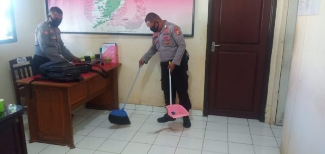 Kerja bakti diruangan Sat Binmas Polres Maluku Tenggara Barat tersebut, dengan Pembersihan itu dimulai dari ruangan dalam kemudian luar ruangan.