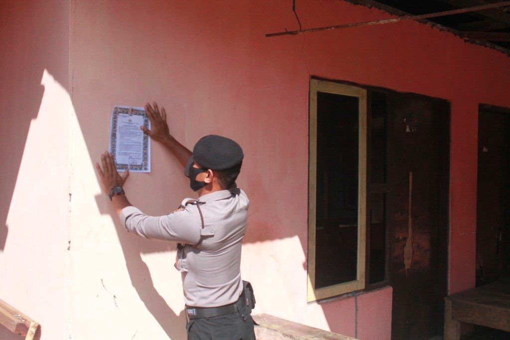 Tribratanews.polrestanimbar.com – Polda Maluku, Polres Maluku Tenggara Barat, Satuan Samapta Polres Maluku Tenggara Barat terus ingatkan warga Saumlaki tentang pencegahan Virus Corona atau Covid 19 lewat penempelan Maklumat Kapolri tentang kepatuhan terhadap kebijakan pemerintah dalam penanganan penyebaran Virus Corona (covid-19).Kamis (7/5/2020).