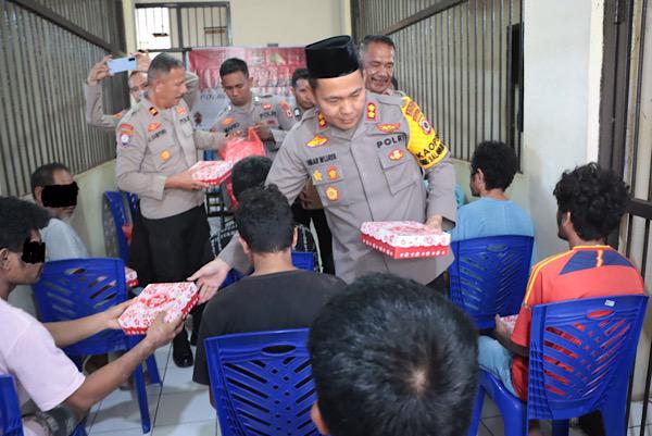 Kapolres Kepulauan Tanimbar AKBP UMAR WIJAYA, S.I.K., mengatakan bahwa apa yang dilakukannya ini adalah merupakan suatu bentuk ungkapan rasa syukur dan terima kasih kepada yang Maha Kuasa atas Berkah yang diberikan, sekaligus untuk berbagi kebahagian dalam rangkaian perayaan Idul Fitri 1445 H di hari ketiga ini bersama para Tahanan di Rumah Tahanan Polres Kepulauan Tanimbar.