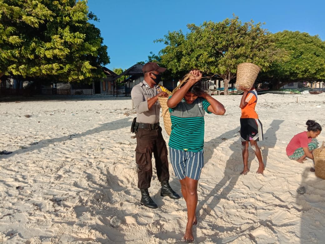 Menyambangi dan melaksanakan giat Binluh sekaligus bersama sama warga masyarakat melaksanakan pembersihan pantai yang ada di Desa Matakus,Dalam giat Binluh tersebut Bhabinkamtibmas juga menyampaikan himbauan sebagai berikut :