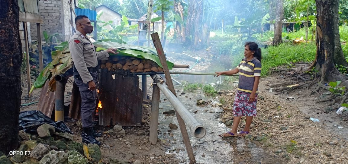 Bhabinkamtibmas Desa Ilngei BRIGPOL E.R.TUTUPARY. Kunjungi Ibu Yuliana Situli/Sasake,yang sedang melakukan pengasapan kelapa untuk di jual.