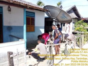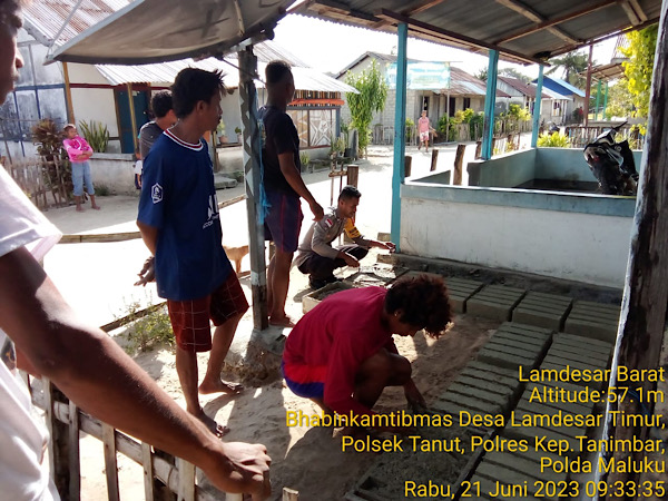 Tribratanews.polrestanimbar.com – Polda Maluku, Polres Kepulauan Tanimbar, melalui Door to Door Sistem, Bhabinkamtibmas Desa Lamdesar Timur Briptu Edison S. Metaloby kunjungi salah satu Warga Binaan yang sementara melaksanakan giat kerja cetak tela (batu bata) di depan rumah, yang Bertempat di Desa Lamdesar Timur, Kecamatan Tanimbar Utara, Kabupaten Kepulauan Tanimbar, Rabu (21/06).