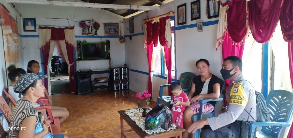 Pada kegiatan door to door Sistem (DDS), Bhabinkamtibmas Desa Ilngei sambangi rumah dari Keluarga Bapak Paulus Sermatan.Dalam giat kunjungan tersebut, Bhabinkamtibmas menyampaikan pesan-pesan Kamtibmas dan mengingatkan kepada warga desa binaan , agar tetap waspada walaupun Aktifitas kembali normal tetapi tetap selalu berpedoman pada Protokol kesehatan dalam pencegahan Covid 19.