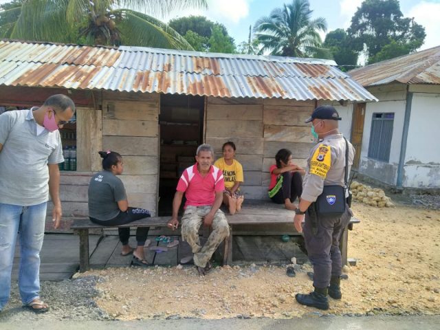 Berkunjung ke keluarga Bapak Beni Ingnuan,saat berkunjungn , Bhabinkamtibmas kebetulan bertemu sekelompok warga yang duduk di depan Kios nya Saudara Beni Ingnuan,kemudian Bhabinkamtibmas memberikan Bimbingan dan Penyuluhan (Binluh) tentang Pencegahan Penyebaran Virus Corona (COVID 19) yang saat ini sedang merebah dan meresahkan masyarakat, sekaligus memberikan petunjuk Pencegahan Penyebaran Virus Corona (COVID-19) :