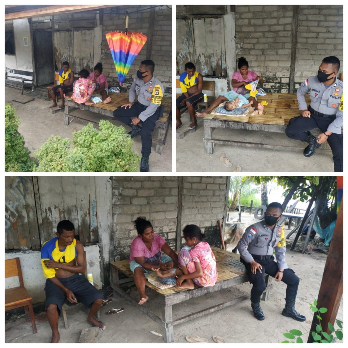 Rabu tanggal 29 April 2020, pukul 12.00 wit, bertempat di Desa Keliobar, Kecamatan Tanimbar Utara, Kabupaten Kepulauan Tanimbar.Bhabinkamtibmas Desa Keliobar Briptu Lucky N.L.Kewilaa Menyambangi warga di Rt 01/Rw 01, dan dalam giat sambang juga taklupa Babinkamtimas menghimbau warga :