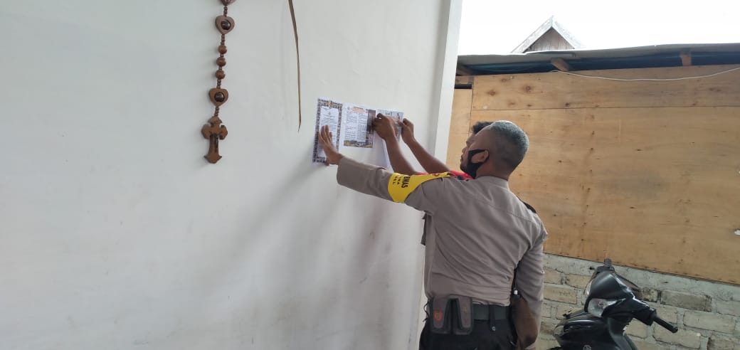 Bripka Petrus Keliduan Melaksanakan kegiatan Sosialisasi Maklumat Kapolri Nomor : Mak/2/III/2020 Tanggal 19 Maret 2020 Tentang Kepatuhan Terhadap Kebijakan Pemerintah Dalam Penanganan Penyebaran Virus Corona (Covid-19).