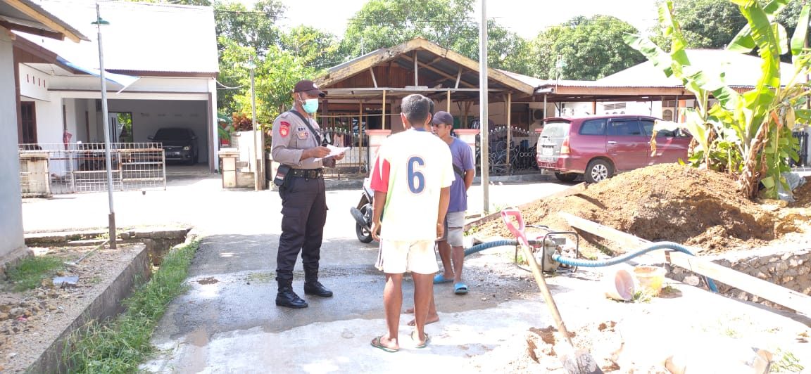 Menyambangi dan melaksanakan giat Binluh terkait Maklumat Kapolri kepada Bapak YOHANIS WATILAY bersama ke dua rekan yang sementara bekerja membangun sumur air bersih,Dalam giat Binluh tersebut Bhabinkamtibmas juga menyampaikan himbauan sebagai berikut :
