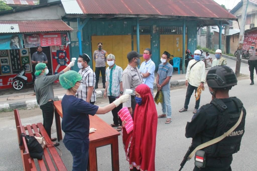 Pantauan Subbag Humas Polres Maluku Tenggara Barat di lokasi, para jamaah yang hendak memasuki area masjid harus melalui proses pemeriksaan kesehatan yang dilakukan oleh pihak Dinas Kesehatan Kabupaten Kepulauan Tanimbar dibantu dengan Urkes Polres Maluku Tenggara Barat.