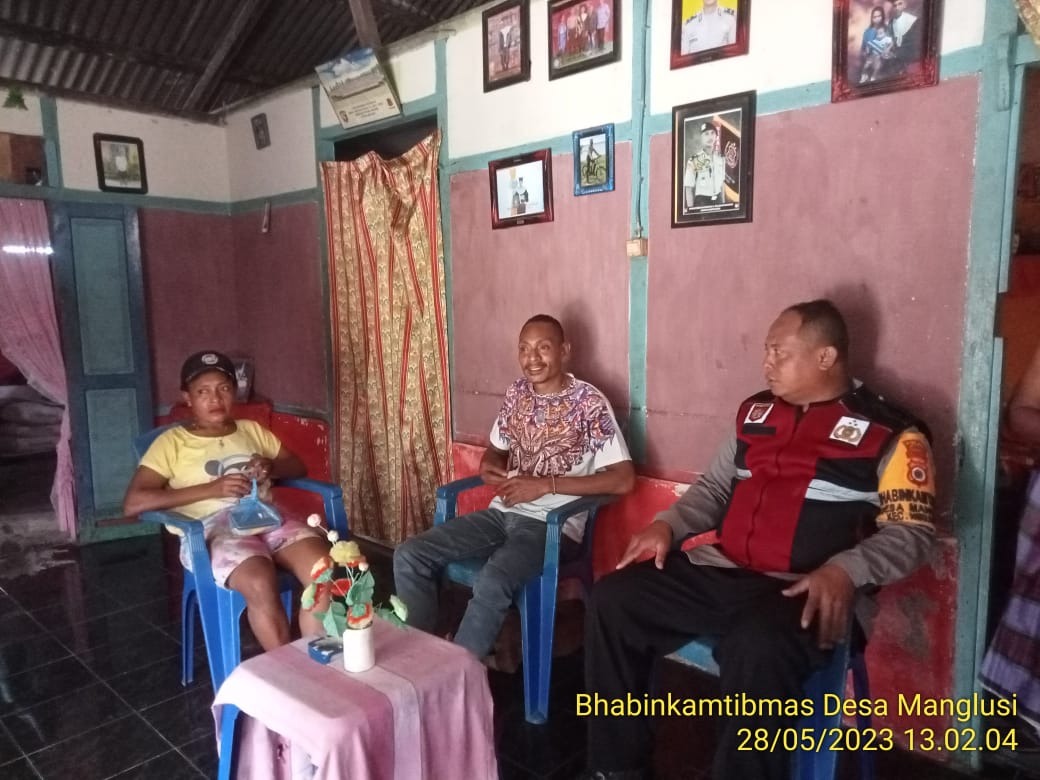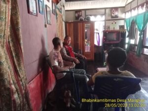 Tribratanews.polrestanimbar.com – Polda Maluku, Polres Kepulauan Tanimbar, Bhabinkamtibmas Desa Manglusi Aipda N. Kundre Melaksanakan giat Door too Door Sistem (DDS) dalam bentuk kunjungan ke ke rumah salah satu Warga RT 01/RW 02 di Desa Manglusi, Kecamatan Nirunmas, Kabupaten Kepulauan Tanimbar, Minggu (28/05).