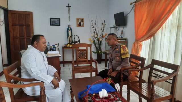 Dalam kunjungannya, Bhabinkamtibmas menyampaikan kepada wakil uskup, agar dapat menyampaikan kepada umat/warga melalui warta gerejawi agar tidak mudah terprovokasi dengan berita HOAX, serta tetap menjaga hubungan kerukunan hidup orang basudara, maupun hidup toleransi kerukunan antar umat beragama dalam menghadapi pemilu 2024.
