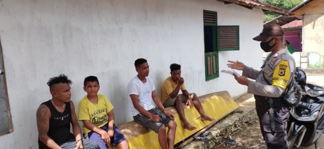 Bhabinkamtibmasm Desa Olilit Barat BRIGPOL EDY F SAKLIL. Menyambangi sekelompok Pemuda yang sementara duduk mangkal, Bhabinkamtibmas sekaligus melaksanakan giat Binluh terkait Maklumat Kapolri dan memberikan pemahaman terkait Pencegahan Penyebaran Virus Corona (COVID 19) yang saat ini sedang merebah dan meresahkan masyarakat.