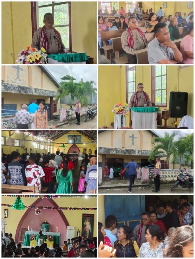 Tribratanews.polrestanimbar.com – Polda Maluku, Polres Kepulauan Tanimbar, Kapolsek Tanimbar Utara AKP Ams Layan Pimpin Mimbar Kamtibmas dan memberikan Pesan – Pesan Kamtibmas kepada Umat Paroki Gereja Santo Pius X Larat Kec Tanut Kab Kepulauan Tanimbar, Minggu (12/02).
