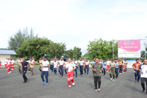 Hadir dalam kegiatan olahraga bersama ini yaitu Pj. Bupati Kepulauan Tanimbar yang diwakili oleh Sekda Kepulauan Tanimbar Drs. Ruben B. Moriolkossu, MM, Kapolres Kepulauan Tanimbar AKBP Umar Wijaya, S.I.K, Dandim 1507/ Saumlaki Letkol Didik Teguh Waluyo, S.I.P., Danlanal Saumlaki, Letkol Laut (P) Andi Kristanto M.Tr.Hanla, Danyonif 734/SNS, Letkol Inf Efran Tri Hernowo, S.I.P dan Forkopimda Kabupaten Kepulauan Tanimbar, PJU TNI-Polri beserta seluruh Personil.