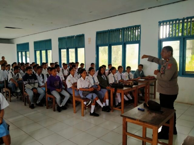Tribratanews.polrestanimbar.com – Polda Maluku, Polres Kepuluan Tanimbar, Guna mencegah kenakalan remaja khususnya para pelajar, Polsek Wertamrian lakukan kegiatan Police Goes To School dalam rangka pembinaan kepada para Pelajar SMA Negeri 4 di Desa Lorulun, Kecamatan Wertamrian, Kabupaten Kepulauan Tanimbar, Senin (22/05).