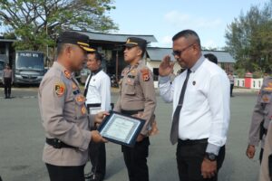 Tribratanews.polrestanimbar.com – Polda Maluku, Polres Kepulauan Tanimbar gelar Upacara Bendera Merah Putih dalam rangka Hari Kesadaran Nasional (HKN) sekaligus memberikan Reward bagi Personel yang berprestasi, berlangsung di lapangan Apel Mapolres Kepulauan Tanimbar, Senin (18/09) pagi.