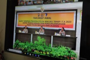 Tribratanews.polrestanimbar.com – Polda Maluku, Polres Kepulauan Tanimbar, Secara Virtual Kegiatan Taklimat Awal Audit Kinerja Tahap I TA. 2023 yang dilaksanakan oleh Itwasda Polda Maluku tentang Aspek Perencanaan dan Pengorganisasian pada Polres Kepulauan Tanimbar, yang Bertempat Di Ruang Vikon Polres Kepulauan Tanimbar, Kamis (02/03).