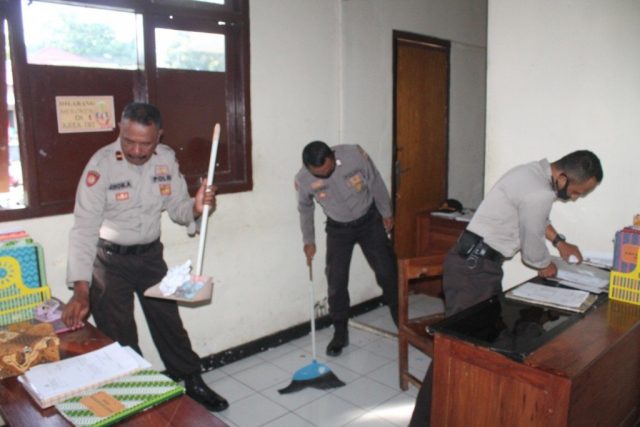 Salah satu upaya yang dilakukan oleh Seksi Umum Polres Maluku Tenggara Barat adalah melaksanakan kegiatan kerja bakti membersihkan lingkungan maupun rungan kerja.Rabu (29/4/2020).