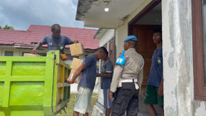 Tribratanews.polrestanimbar.com – Polda Maluku, Kepolisian Resor Kepulauan Tanimbar, memperketat Pengawalan dan Pengamanan kedatangan Logistik Pemilu pada Pelabuhan Yos Sudarso Saumlaki menuju ke Kantor KPU Kabupaten Kepulauan Tanimbar, Kamis (11/01/24) pagi.