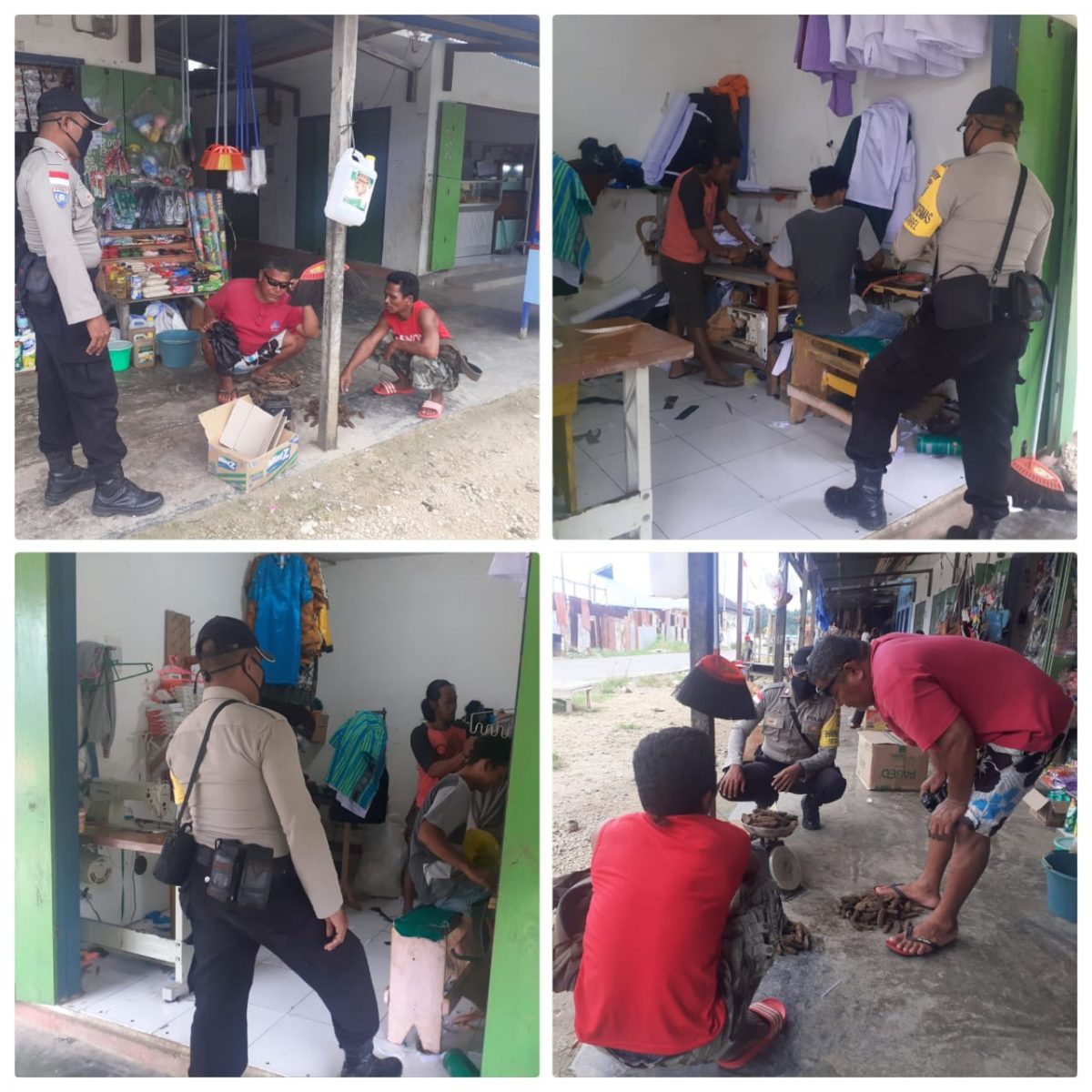 Bhabinkamtibmas Desa Ritabel BRIPKA S.RAHANTALY, Mengunjungi warga desa yang berjualan maupun  di tempat jahit, dalam kegiatan kunjungan,  tak lupa Bhabinkamtibmas menghimbau antara lain :