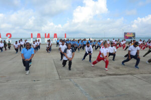 Setelah selesai melaksanakan Apel Gabungan, TNI Polri dan Forkopimda melaksanakan Senam SKJ bersama dan dilanjutkan jalan santai dengan Route Start dari Pelabuhan Lanal Saumlaki menuju Mako Lanal hingga Kembali lagi ke Pelabuhan dan kemudian giat dilanjutkan dengan Latihan Menembak hingga lomba Olahraga Bola Voli.