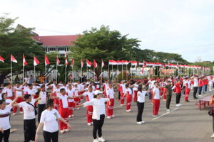 Dalam rangkaian kegiatan ini, diawali dengan jalan sehat bersama dari depan Mapolres Kepulauan Tanimbar hingga finish di depan Kantor Bupati Kabupaten Kepulauan Tanimbar. Kemudian, dilanjutkan dengan pencanangan Bendera Merah Putih sebagai simbol rasa cinta tanah air dan semangat Nasionalisme.