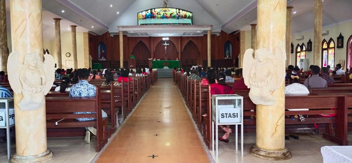 Tribratanews.polrestanimbar.com – Polda Maluku, Polres Maluku Tenggara Barat, Minggu 02 Agustus 2020, Jam 08.00 wit, bertempat di Gereja St. Mathias Saumlaki Kecamatan Tanimbar Selatan Kabupaten Kepulauan Tanimbar Bhabinkamtibmas Kelurahan Saumlaki Briptu Alfi Toisuta menghadiri dan mengamankan Giat Ibadah Minggu.
