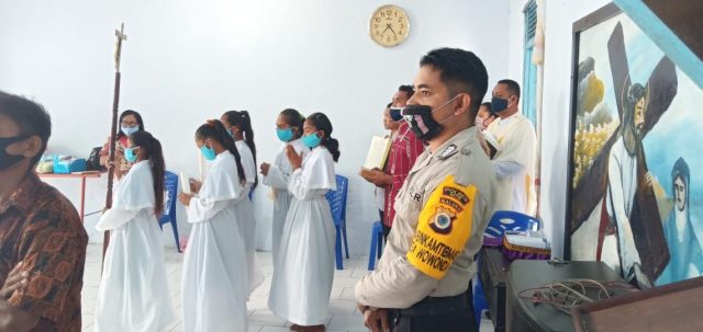 Misa Perayaan Ekaristi Kudus Stasi Wowonda mendapatkan Pengamanan Bhabinkamtibmas
