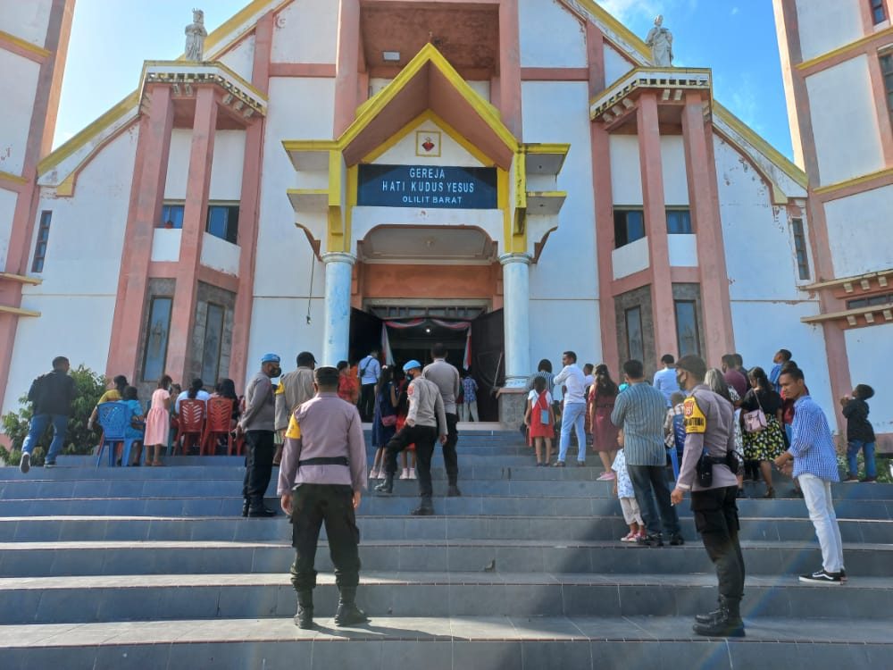 Misa Syukur Uskup Diosis Amboina di Gereja Olilit Barat mendapat Pengamanan personil Polres Tanimbar dan TNI