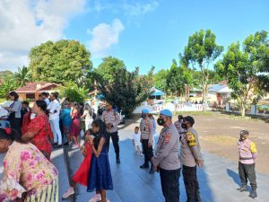 Tribrabatanews.polrestanimbar.com – Polda Maluku, Polres Kepulauan Tanimbar, Tim Pengamanan Polres Tanimbar dan TNI serta Polsek Tanimbar Selatan melakukan Pengamanan terhadap jalannya Misa Syukur yang dipimpin oleh Uskup Diosis Amboina Mgr. Seno Ngutra, Pr di Gereja Hati Kudus Yesus desa Olilit Barat, Kec. Tanimbar Selatan, Kab. Kep. Tanimbar. Minggu (22/05/2022).