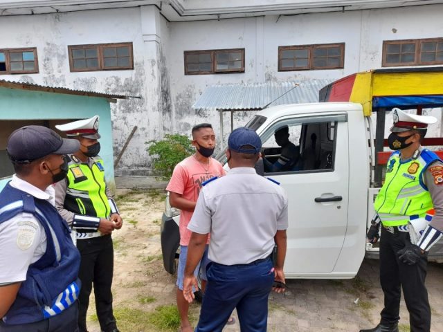 Tribratanews.polrestanimbar.com-Polda Maluku, Polres Kepulauan Tanimbar, Jumat, 03 September 2021, pukul 13.00 wit s/d 14.30 wit, Unit Turjawali Sat Lantas Polres Kepulauan Tanimbar bersama Dinas Perhubungan Kep. Tanimbar rutin laksanakan kegiatan Operasi Penertiban kendaraan angkutan Umum.