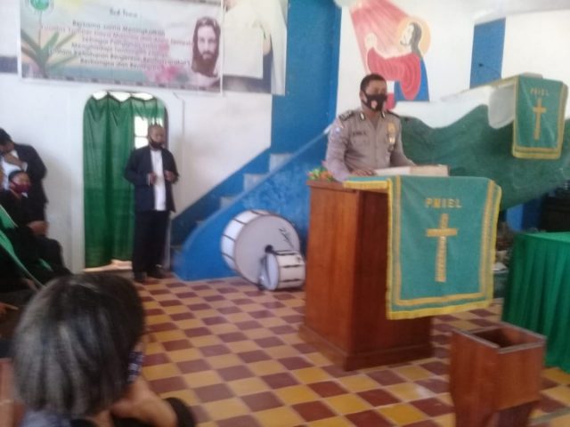 Tribratanews.polrestanimbar.com – Polda Maluku, Polres Maluku Tenggara Barat, Minggu 13 September 2020, pukul 11.00 wit bertempat di Gedung Gereja Pniel Desa Keliobar Kecamatan Tanimbar Utara, Kabupaten Kepulauan Tanimbar P.s. Kanit Binmas Polsek Tanimbar Utara Bripka Freyjon Ronald Sianressy melaksanakan Giat Mimbar Kamtibmas di Jemaat GPM Keliobar Desa Keliobar Kecamatan Tanimbar Utara Kabupaten Kepulauan Tanimbar.