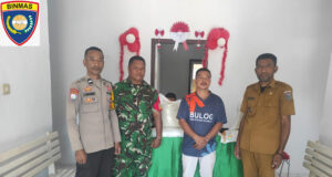 Monitoring pembagian Bansos, Bhabinkamtibmas Saumlaki Utara bersama Babinsa bersinergi lakukan pengamanan