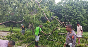 Pohon tumbang tutupi bahu jalan, Sat Lantas Polres Kepulauan Tanimbar gerak...