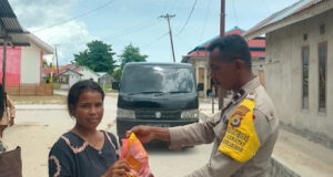 Peduli Warga kurang mampu, Bhabinkamtibmas Karatat berikan bantuan paket sembako