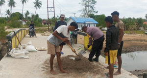 Wujudkan Polri untuk Masyarakat, Bhabinkamtibmas Kilon bantu Warga perbaiki jalan berlubang