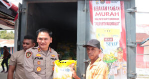 Ringankan beban Warga, Kapolres Kepulauan Tanimbar pimpin Gerakan Pangan Murah (GPM)