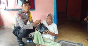 Bhabinkamtibmas Desa Waturu Bagikan Bansos Bapak Kapolri Kepada Warga Terdampak Covid...