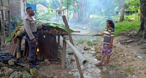 Kunjungi Keluarga Bapak Fitalis Kundre,Bhabinkamtibmas Desa Kabiarat Sampaikan Maklumat Kapolri