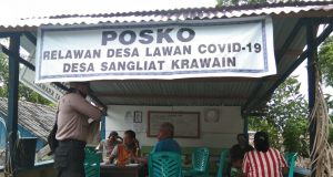 Sambangi Posko Covid 19 Desa Sangliat Krawain,Bhabinkamtibmas Sosialisasi Maklumat Kapolri
