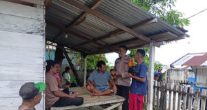 Pererat silaturahmi, Bhabinkamtibmas Wermatang sambangi Warga yang sedang bersantai di depan...