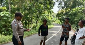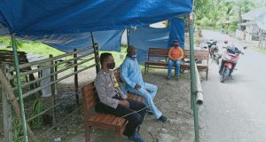 Bhabinkamtibmas Pantau Langsung Giat Masyarakat Pada Posko Covid 19