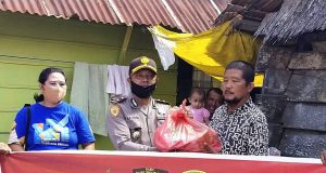 Bhabinkamtibmas Kelurahan Saumlaki Kawal Giat Pembagian Sembako Bagi Warga Terdampak Covid...