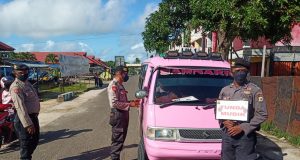 Bhabinkamtibmas Desa Romean Bersama Satgas Covid 19 Siaga Kedatangan KM Sabuk...